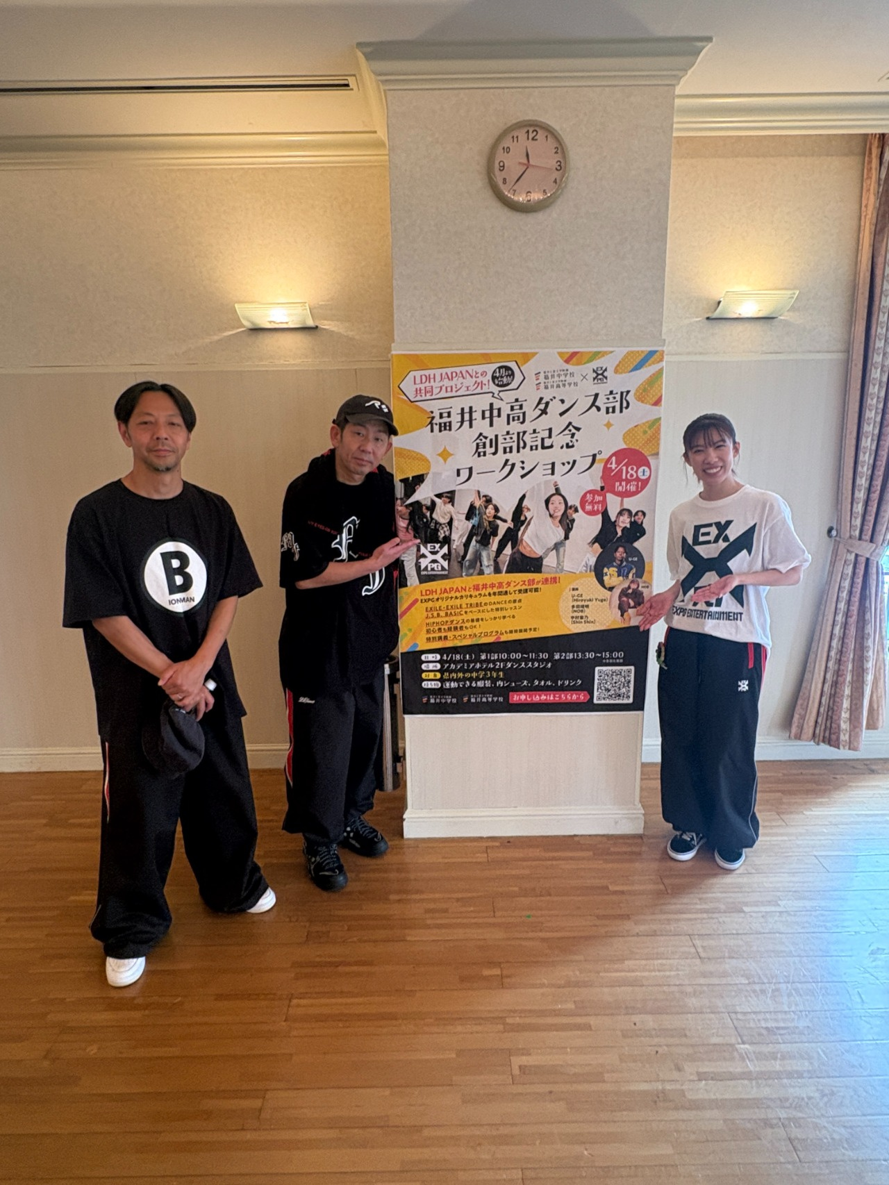 お知らせ news TOP お知らせ 福井中高ダンス部 LDH JAPAN ワークショップを開催しました お知らせ 2026.04.19 福井中高ダンス部 LDH JAPAN ワークショップを開催しました LDH JAPANとの連携に伴い、令和8年4月18日(土)にダンス部創部記念ワークショップを開催しました。 LDH JAPANの講師の方にご指導いただき、貴重な体験となりました。 たくさんのごsなんかありがとうございました。 5月からはダンス部の指導に定期的に来ていただき、EXPG特別プログラムが本学始動となります。