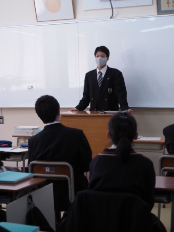 2年生のスーパー特進コースの生徒にむけて、東大合格までの勉強方法など教えてくれました。