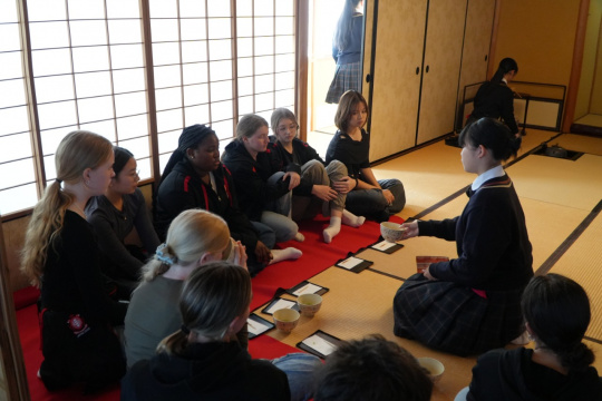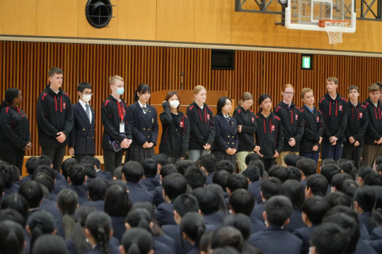 お知らせ news TOP お知らせ 姉妹校Sacred Heart Colleage 交換留学 お知らせ 2024.04.19 姉妹校Sacred Heart Colleage 交換留学 令和6年4月10日~13日、姉妹校であるSacred Heart Colleageから交換留学生23名が来校し、高校生と交流しました。留学生は、紙漉きや着付け、書道、茶道などの体験を通して、日本文化を学びました。また、施設見学や部活動見学、学食体験を通して高校生とコミュニケーションを取っていました。今後も国際交流を継続していく予定です。