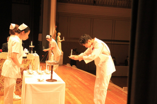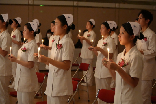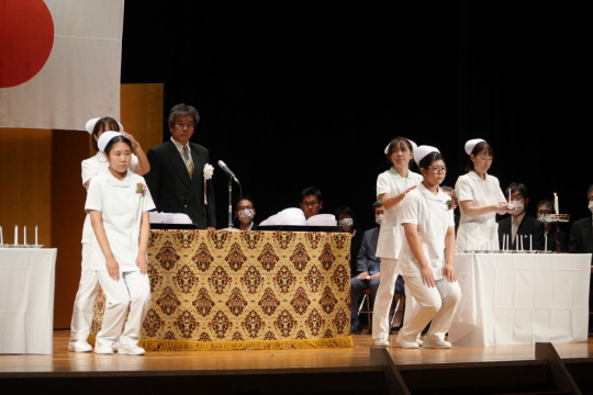 お知らせ news TOP お知らせ 戴帽式を執り行いました お知らせ 2024.09.13 戴帽式を執り行いました 令和6年9月12日(木)令和6年度第55回衛生看護科戴帽式を執り行いました。 ご来賓や恩師の先生方、保護者の方や衛生看護科1・3年生および衛生看護専攻科学生に参列いただき、厳かな式になりました。 衛生看護科2年生は来月から臨地実習へ臨みます。本日の戴帽式での誓いを胸に、実習などで豊富な経験を積み、看護師を目指します。 この先、厳しい看護の道が始まりますが、誓いを忘れることなく、感謝の気持ちを持ち、患者さんの心に寄り添える看護師になってほしいと願います。