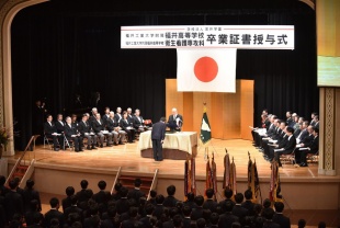 お知らせ news TOP お知らせ 卒業式が行われました お知らせ 2019.03.01 卒業式が行われました 本日3月1日(金)午前10時より、金井講堂にて第68回福井工業大学附属福井高等学校・第20回福井工業大学附属福井高等学校衛生看護専攻科の卒業式が行われました。 高等学校441名と専攻科37名、総数478名の卒業生が無事卒業の日を迎え、ご来賓をはじめ、学園関係者と教員・保護者の皆様が見守る中、盛大で感動的な式となりました。 卒業生の皆さん、ご卒業おめでとうございます。 今後も強い心を持ち、力強く歩んでください。