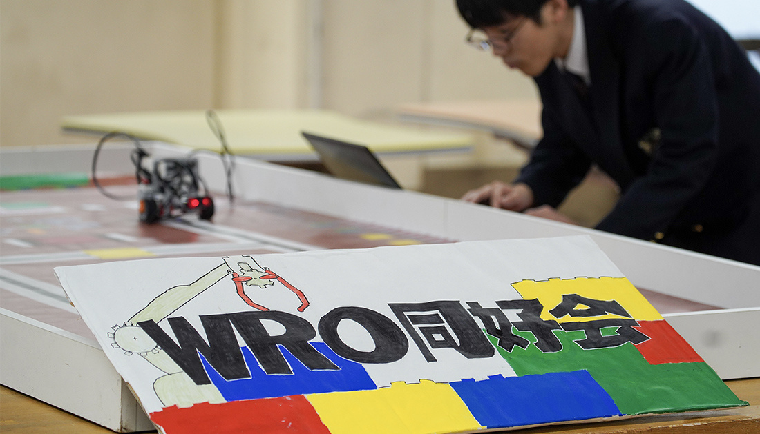 WRO同好会は2024年度より発足した部活動で、WRO(World Robot Olympiad)の全国大会を目指して頑張っています。WROの大会は、LEGOを用いた自律型ロボットを組み立てて、2~3名のチームで様々なミッションを攻略するというものです。当日発表される課題に挑む合わせて、機体を調整する必要があるので、チームワーク・コミュニケーション能力・課題解決能力・論理的思考力・柔軟な発想力など、様々な力が求められます。