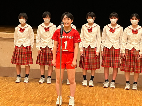 お知らせ news TOP お知らせ 壮行会をおこないました お知らせ 2025.06.05 壮行会をおこないました 6月5日、これから始まる全国大会・県大会・地区大会等に出場する部活動の壮行会をおこないました。 各キャプテンから大会へ向けた抱負が発表され、校長・生徒会長から激励の言葉が送られました。 最後は全校生徒で円陣を組み、気持ちをひとつにしました。
