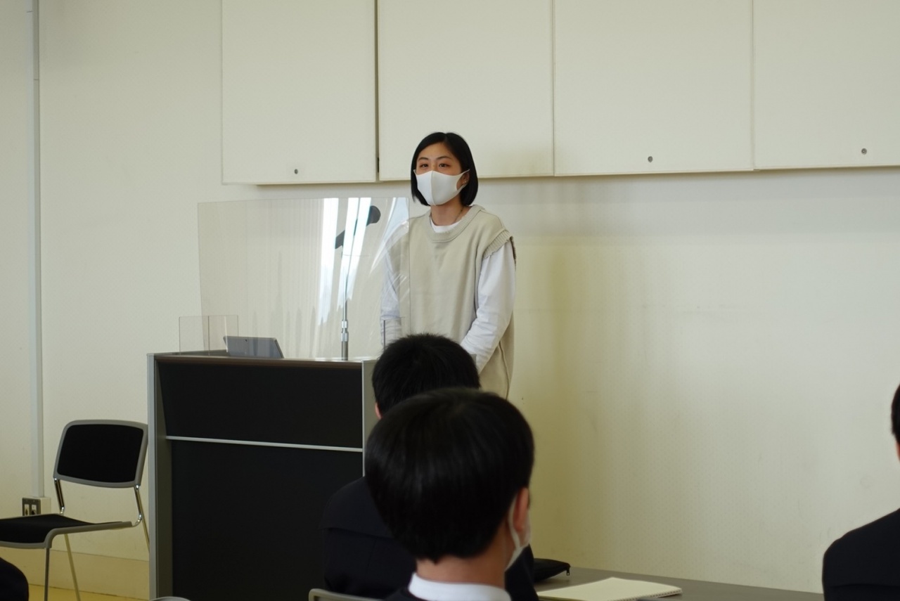 上坂さんはご多忙にもかかわらず、コロナウイルス対策を万全にして来校されました。