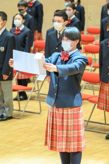 新入生を代表し、淵上ももさんが「学園の建学の精神に従い校則を守り、福井中学生として誇りをもって学校生活に励みます」と宣誓しました。