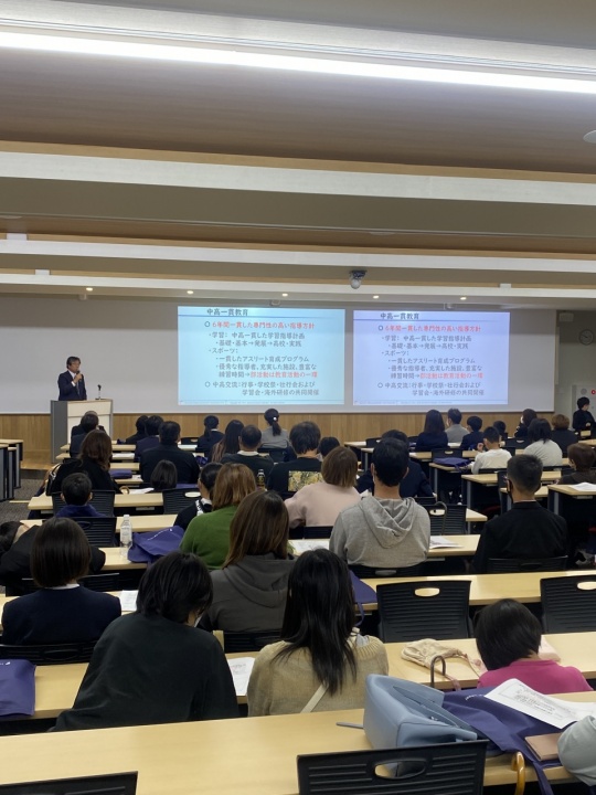 お知らせ news TOP お知らせ 第1回学校説明会を開催しました お知らせ 2023.10.23 第1回学校説明会を開催しました 令和5年10月21日(土)、第1回学校説明会を開催しました。本校の教育内容や学校生活・部活動などの説明を行いました。多数のご参加、ありがとうございました。 第Ⅰ期入学試験の出願受付は、11月8日(水)~11月22日(水)です。